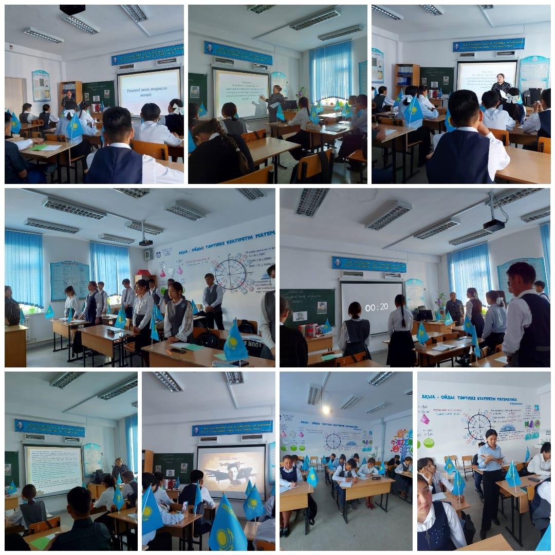 Мен елімнің ертеңімін атты тақырыпта оқушылар жазған эсселерін оқып, бір - біріне кері байланыс берді. Ұлы жеңіске жаттап келген арнауларын айтты .